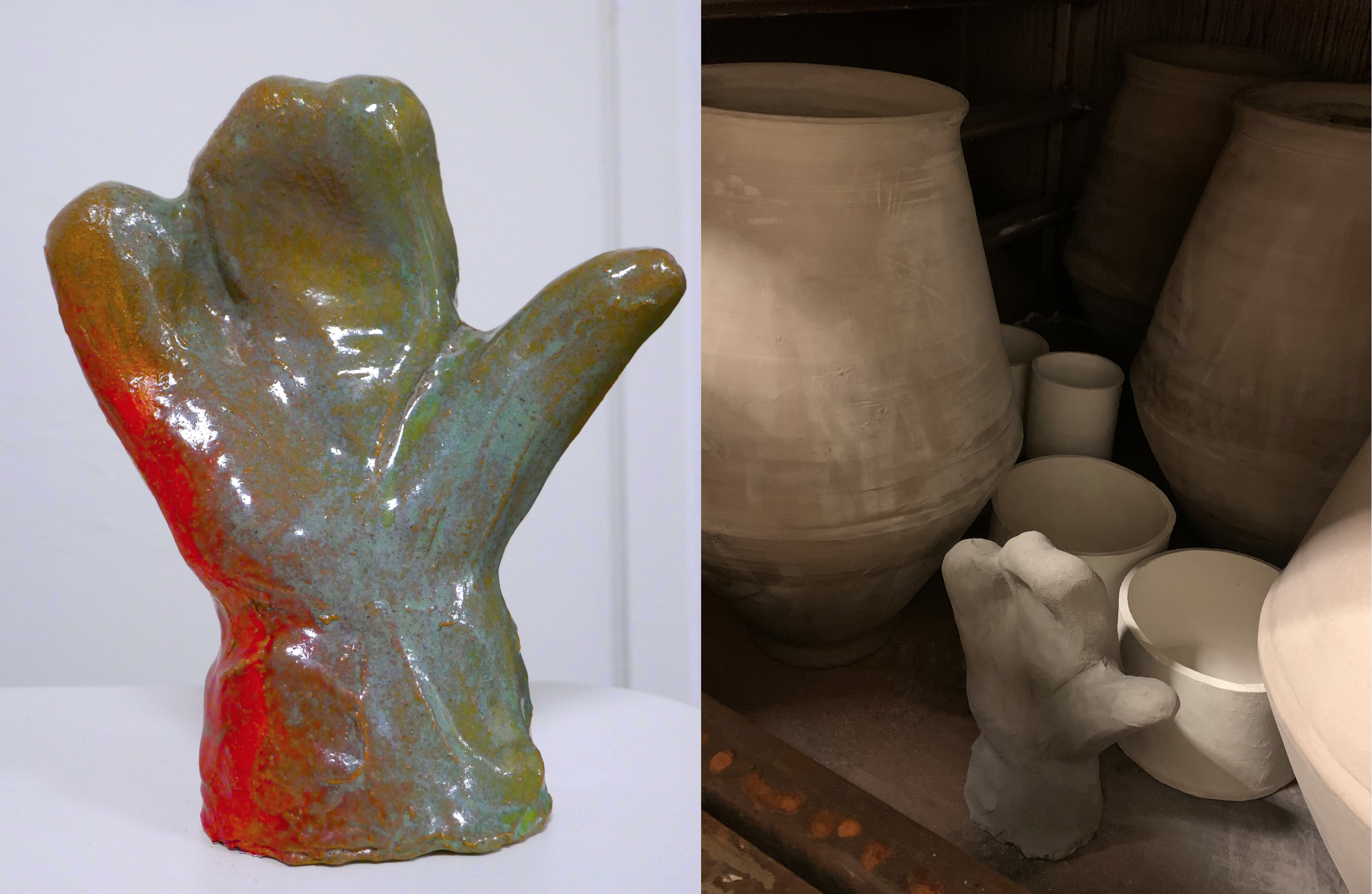 fig 5 & 6 --- Gant en céramique émaillée, Gant avant cuisson